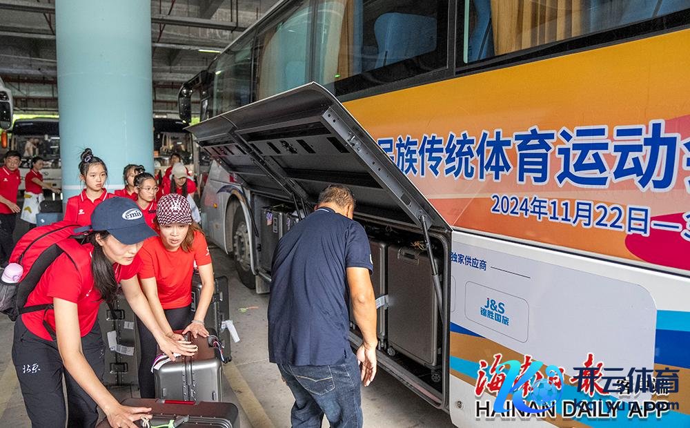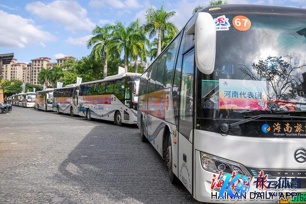 11月18日,在三亚凤凰国外机场,第十二届寰球少数民族传统体育通顺会北京市代表团的通顺员搭车前去旅店。海南日报全媒体记者 李天平 摄