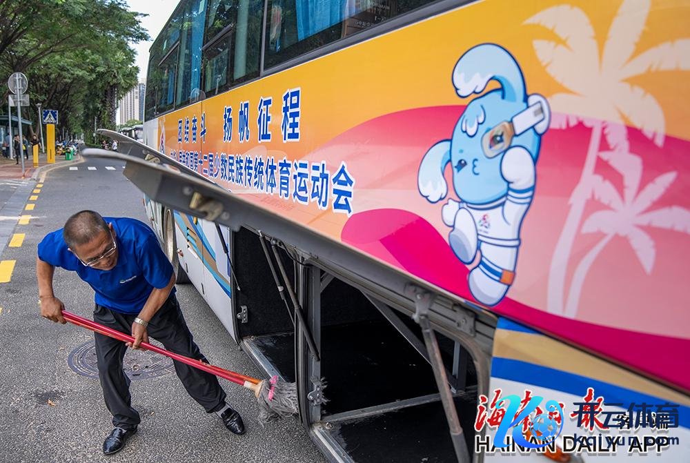 11月18日开云体育,在三亚湾红树林度假世界,司机清洁车辆准备前去机场管待通顺员。海南日报全媒体记者 李天平 摄