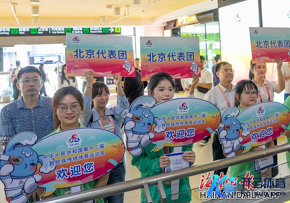 11月18日,第十二届寰球少数民族传统体育通顺会北京市代表团的通顺员抵达三亚凤凰国外机场。海南日报全媒体记者 李天平 摄