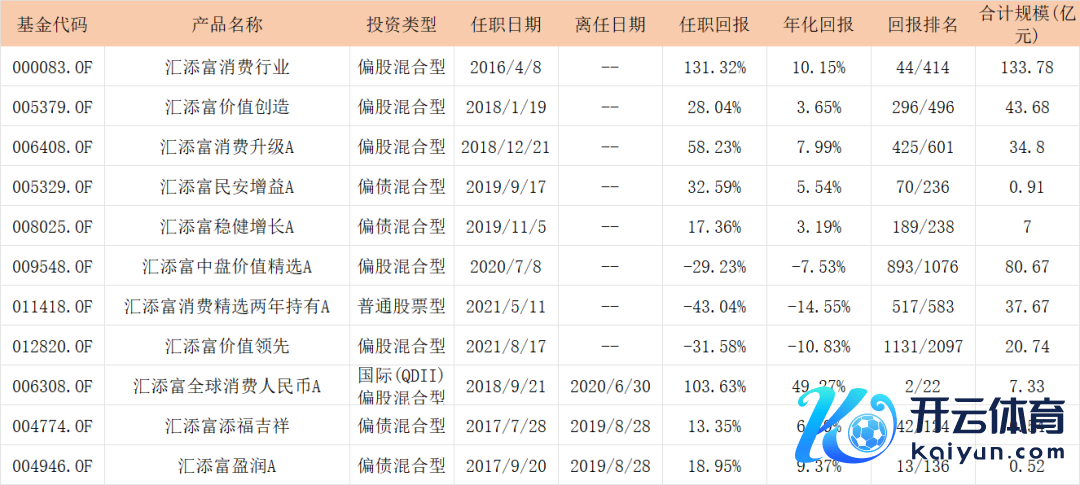 据Wind数据自满,胡昕炜现在在管8只基金,任期功绩或者排在同类基金前50%的只好汇添富销耗行业A和汇添富民安增益A2只,汇添富销耗升级A、汇添富庄重增长A、汇添富中盘价值精选A以及汇添富销耗精选两年执有A四只基金排在后30%。