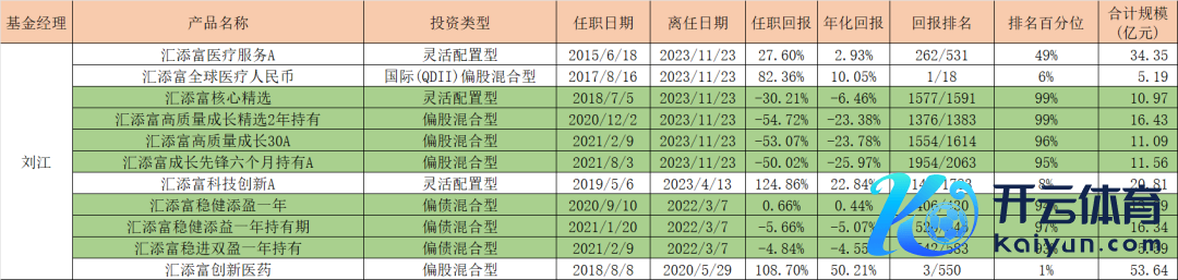 除了在职的基金司理之外,汇添富基金一些“荫藏东谈主物”,举例于2023年年末去职的刘江。贵府自满,刘江前后不断过11只基金,巅峰时期不断边界高达552.45亿元,但竟有7只不断过的基金排在90%开外,妥妥地处于倒数之列。