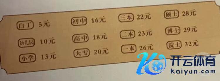 不同学历对应不同价钱。 网络图