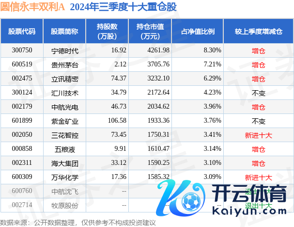 圆信永丰双利A为夹杂型-生动基金,把柄最新一期基金季报潜入,该基金钞票确立:股票占净值比93.1%,债券占净值比5.02%,现款占净值比2.3%。基金十大重仓股如下: