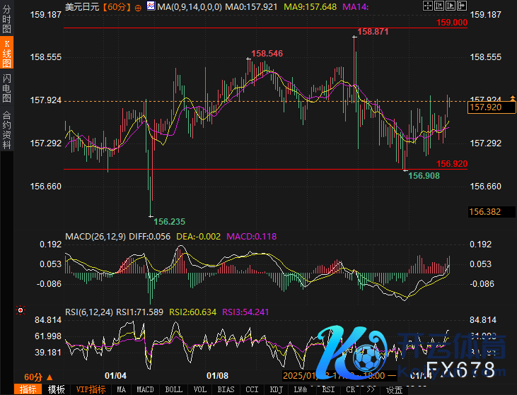 好意思元兑日元近期的技艺走势败清晰热烈的飞腾势头。从1月13日的走势来看,USD/JPY的撑握位踏着实156.92隔邻,而上行阻力则位于158.00隔邻,本日交往时段该货币对班师冲破了这一区间,呈现出悠扬上行的面貌。字据技艺面分析,好意思元兑日元的技艺偏向连接看涨,30日和60日之间的磋商性也保握在+0.50以上,这标明好意思元和日元之间的磋商性较强,且好意思元的强势可能会延续。