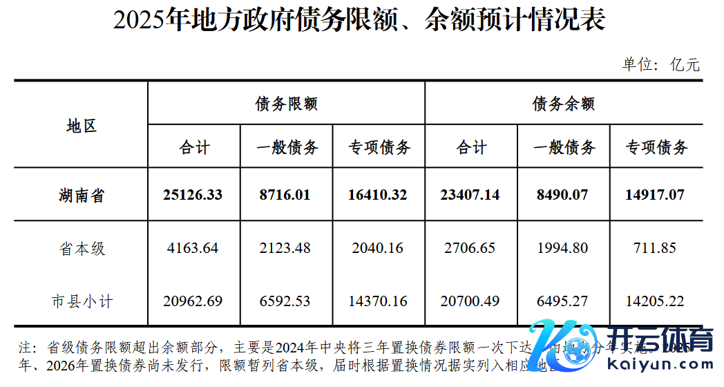 湖南预算施展数据泄漏,限制2024年底湖南政府债务余额21243.4亿元,限度在中央核命名额24097.3亿元以内,风险总体可控。